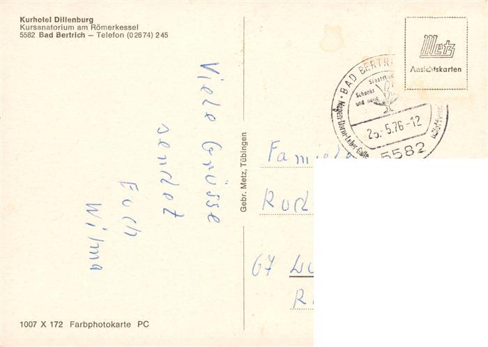 73895250 alte Postkarte Bad Bertrich Kurhotel Dillenburg Rezeption postalisch gelaufen Erhaltung siehe scans [WerneD78] KatCode: 11110007135501
