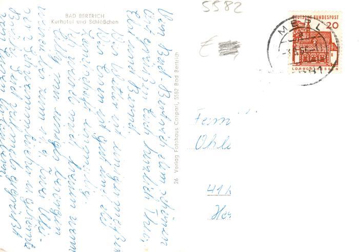73904110 alte Postkarte Bad Bertrich Kurhotel und Schloesschen postalisch gelaufen Erhaltung siehe scans [WerneD78] KatCode: 11110007135501