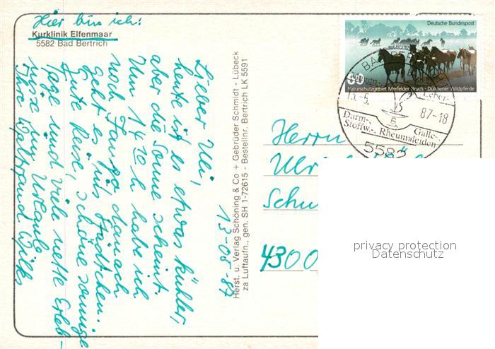 73542213 alte Postkarte Bad Bertrich Kurklinik Elfenmaar postalisch gelaufen Erhaltung siehe scans [WerneD78] KatCode: 11110007135501