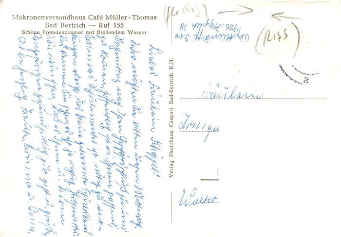 73902936 alte Postkarte Bad Bertrich Makronenversandhaus Cafe Mueller Thomas postalisch gelaufen Erhaltung siehe scans [WerneD78] KatCode: 11110007135501