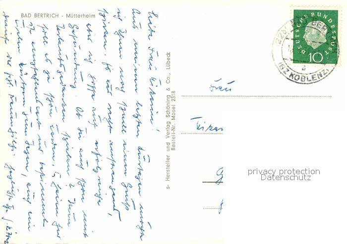 72790066 alte Postkarte Bad Bertrich Muetterheim postalisch gelaufen Erhaltung siehe scans [AndreD76] KatCode: 11110007135501