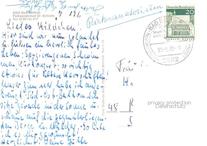 73787920 alte Postkarte Bad Bertrich Parksanatorium Dr. Schiche postalisch gelaufen Erhaltung siehe scans [FriedD77] KatCode: 11110007135501