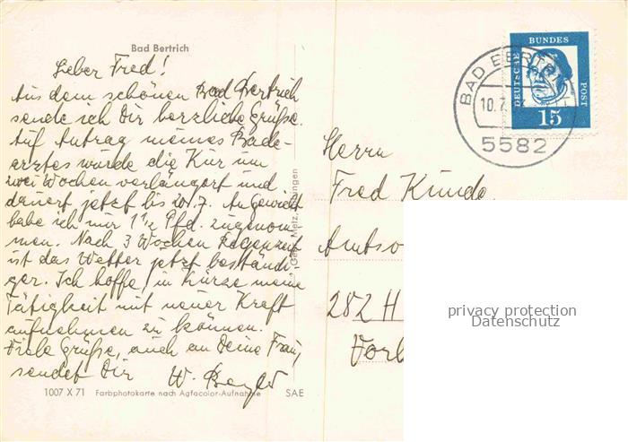 74154856 alte Postkarte Bad Bertrich Rheinland-Pfalz Fliegeraufnahme postalisch gelaufen Erhaltung siehe scans [WerneD78] KatCode: 11110007135501