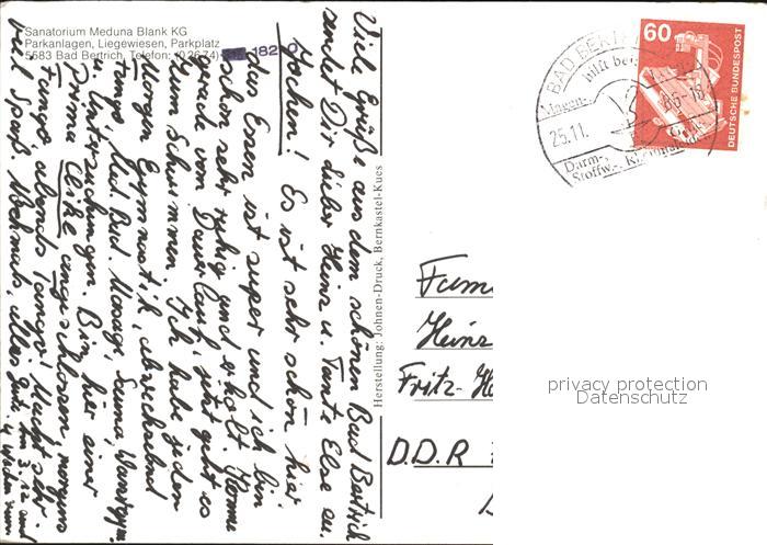 72426028 alte Postkarte Bad Bertrich Sanatorium Meduna Blank KG Gymnastik Hallenbad Restaurant postalisch gelaufen Erhaltung siehe scans KatCode: 11110007135501