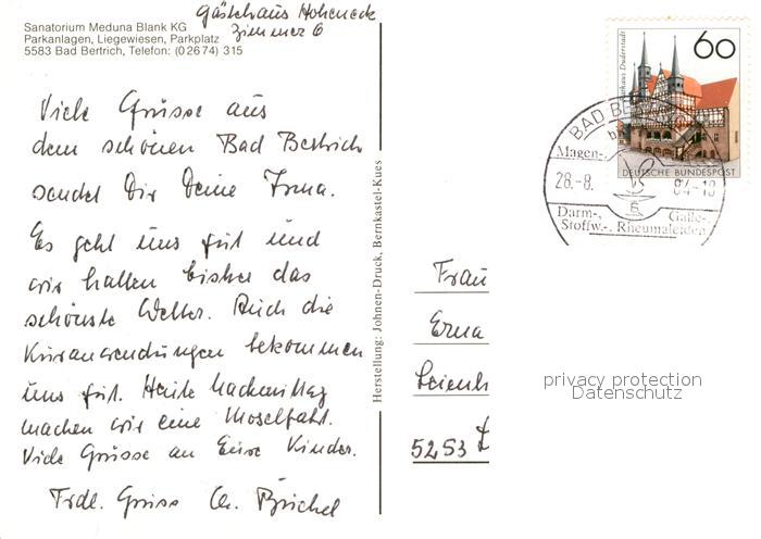 72993695 alte Postkarte Bad Bertrich Sanatorium Meduna Blank postalisch gelaufen Erhaltung siehe scans [AndreD76] KatCode: 11110007135501