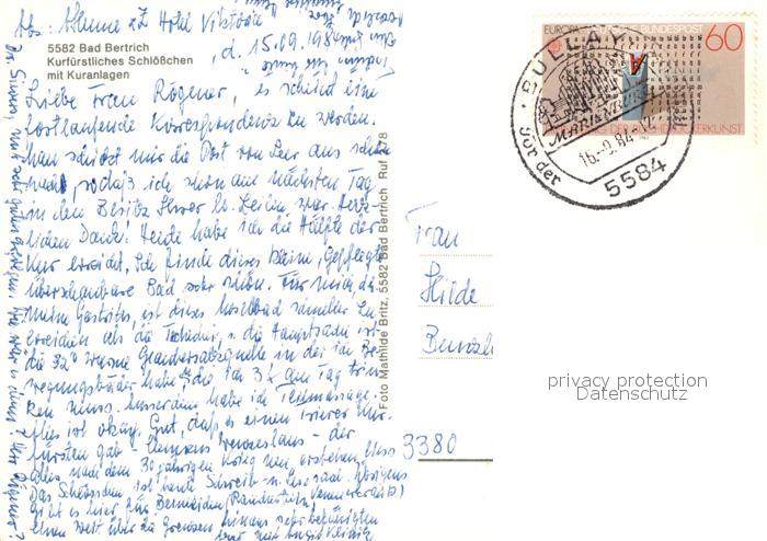 73125668 alte Postkarte Bad Bertrich Schloss Kuranlagen postalisch gelaufen Erhaltung siehe scans [LiesaD40] KatCode: 11110007135501