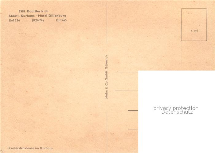 73543005 Bad Bertrich Staatliches Kurhaus Hotel Dillenburg Kurfuerstenklause postalisch nicht gelaufen Erhaltung siehe scans [FriedD77] KatCode: 11110007135501