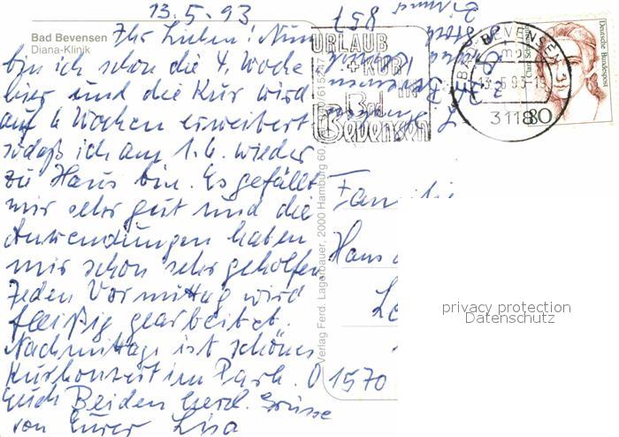 72836422 alte Postkarte Bad Bevensen Diana-Klinik postalisch gelaufen Erhaltung siehe scans [PaolaD17] KatCode: 11110003360002