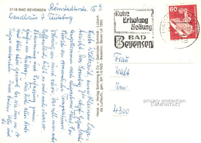 73541239 alte Postkarte Bad Bevensen Fliegeraufnahme postalisch gelaufen Erhaltung siehe scans [WerneD78] KatCode: 11110003360002