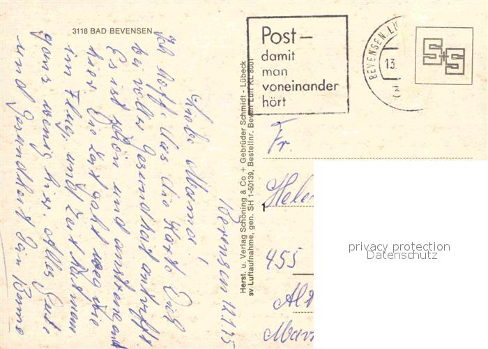 72861726 alte Postkarte Bad Bevensen Fliegeraufnahme postalisch gelaufen Erhaltung siehe scans [FriedD77] KatCode: 11110003360002