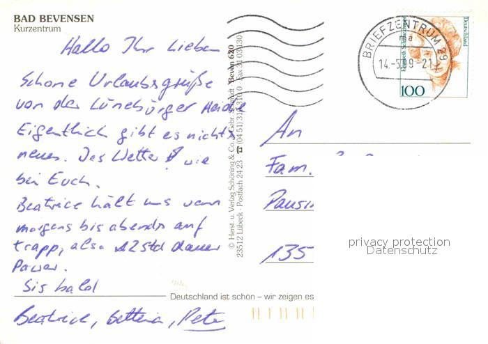 72825308 alte Postkarte Bad Bevensen Fliegeraufnahme postalisch gelaufen Erhaltung siehe scans [AndreD76] KatCode: 11110003360002