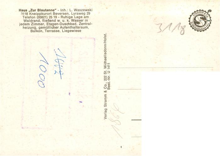 73874537 Bad Bevensen Gaestehaus Pension Haus zur Blautanne postalisch nicht gelaufen Erhaltung siehe scans [FriedD77] KatCode: 11110003360002