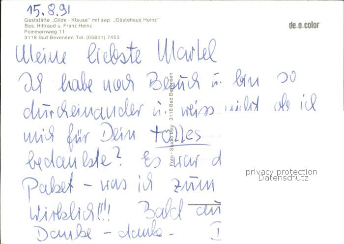 72497186 Bad Bevensen Gaststaette Gilde Klause Gaestehaus Heinz postalisch nicht gelaufen Erhaltung siehe scans KatCode: 11110003360002