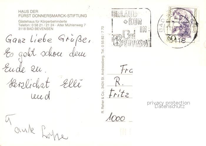 73123010 alte Postkarte Bad Bevensen Haus der Fuerst Donnersmarck-Stiftung postalisch gelaufen Erhaltung siehe scans [NatalD47] KatCode: 11110003360002
