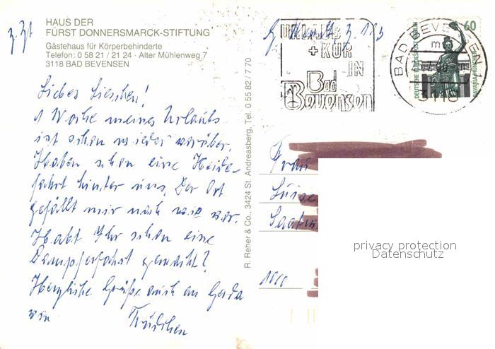 72889101 alte Postkarte Bad Bevensen Haus der Fuerst Donnersmarck-Stiftung postalisch gelaufen Erhaltung siehe scans [LiesaD40] KatCode: 11110003360002