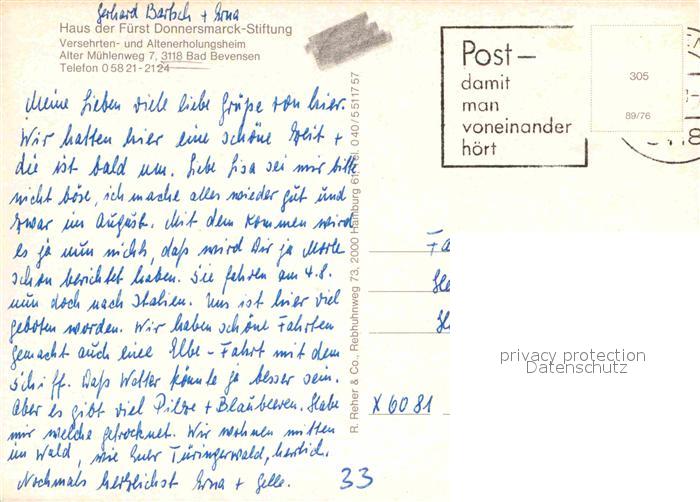 72878657 alte Postkarte Bad Bevensen Haus der Fuerst Donnersmarck Stiftung Erholungsheim postalisch gelaufen Erhaltung siehe scans [FriedD77] KatCode: 11110003360002