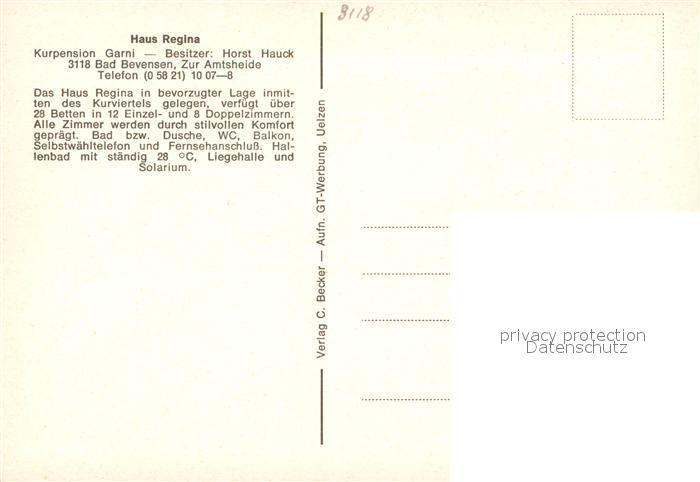 73167988 Bad Bevensen Haus Regina Pension Garni Horst Hauck Speisesaal postalisch nicht gelaufen Erhaltung siehe scans [LiesaD40] KatCode: 11110003360002