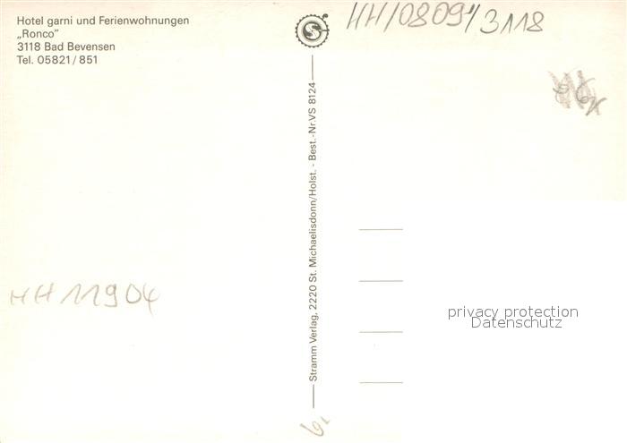 73653566 Bad Bevensen Hotel garni und Ferienwohnungen Ronco postalisch nicht gelaufen Erhaltung siehe scans [WerneD78] KatCode: 11110003360002