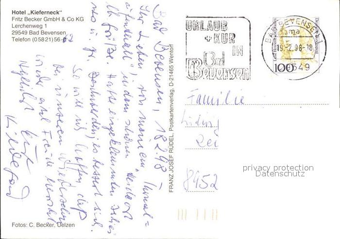 72049446 alte Postkarte Bad Bevensen Hotel Kieferneck postalisch gelaufen Erhaltung siehe scans KatCode: 11110003360002