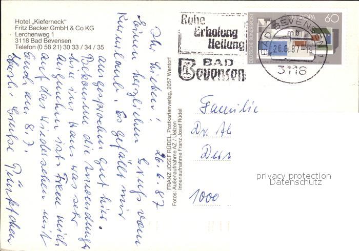 72614207 alte Postkarte Bad Bevensen Hotel Kieferneck postalisch gelaufen Erhaltung siehe scans [LiesaD40] KatCode: 11110003360002