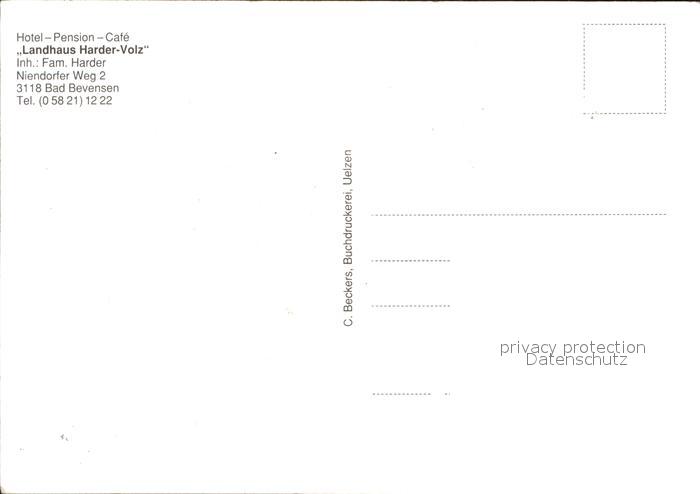 72494150 Bad Bevensen Hotel Pension Cafe Landhaus Harder Volz postalisch nicht gelaufen Erhaltung siehe scans KatCode: 11110003360002