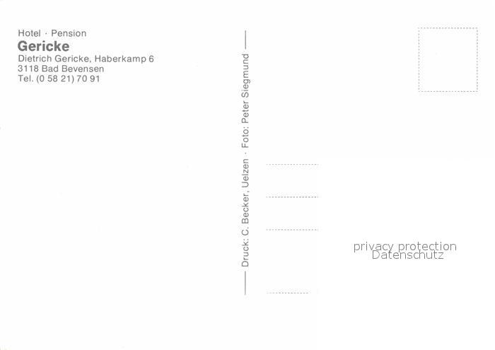 72631378 Bad Bevensen Hotel Pension Gericke postalisch nicht gelaufen Erhaltung siehe scans [LiesaD40] KatCode: 11110003360002