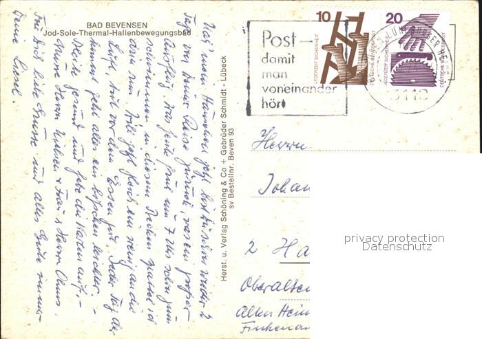 72444337 alte Postkarte Bad Bevensen Jod-Sole-Thermal-Hallenbewegungsbad postalisch gelaufen Erhaltung siehe scans KatCode: 11110003360002
