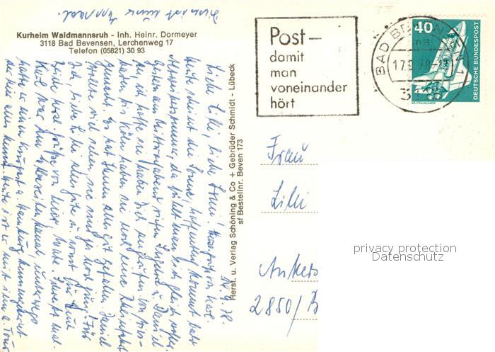 73764429 alte Postkarte Bad Bevensen Kurheim Waidmannsruh postalisch gelaufen Erhaltung siehe scans [FriedD77] KatCode: 11110003360002