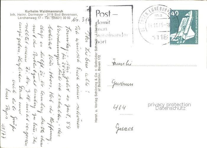 72106876 alte Postkarte Bad Bevensen Kurheim Waldmannsruh postalisch gelaufen Erhaltung siehe scans KatCode: 11110003360002