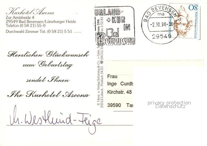 73205798 alte Postkarte Bad Bevensen Kurhotel Ascona postalisch gelaufen Erhaltung siehe scans [NatalD47] KatCode: 11110003360002