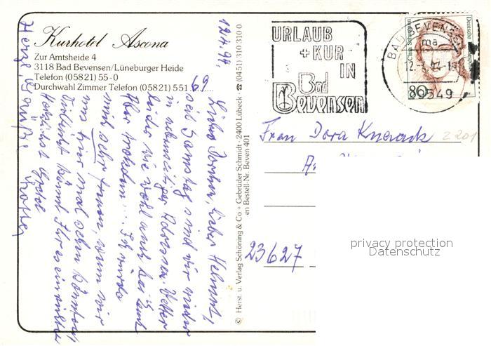 73128482 alte Postkarte Bad Bevensen Kurhotel Ascona postalisch gelaufen Erhaltung siehe scans [NatalD47] KatCode: 11110003360002