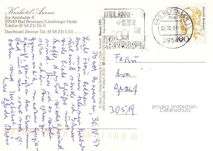 73684246 alte Postkarte Bad Bevensen Kurhotel Ascona postalisch gelaufen Erhaltung siehe scans [LiesaD40] KatCode: 11110003360002