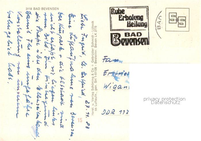 73657166 alte Postkarte Bad Bevensen Kurort Fliegeraufnahme postalisch gelaufen Erhaltung siehe scans [FriedD77] KatCode: 11110003360002