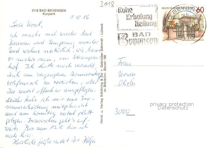 72953486 alte Postkarte Bad Bevensen Kurpark Seerosenteich postalisch gelaufen Erhaltung siehe scans [FriedD77] KatCode: 11110003360002