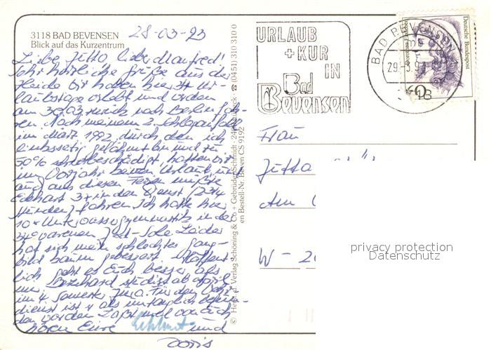 73097874 alte Postkarte Bad Bevensen Kurzentrum Fliegeraufnahme postalisch gelaufen Erhaltung siehe scans [WerneD78] KatCode: 11110003360002