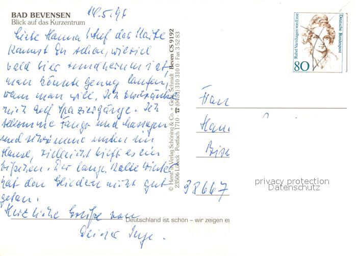 73164974 alte Postkarte Bad Bevensen Kurzentrum Fliegeraufnahme postalisch gelaufen Erhaltung siehe scans [WerneD78] KatCode: 11110003360002