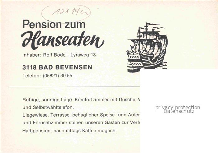 Bad Bevensen Pension Zum Hanseaten postalisch nicht gelaufen Keine Postkarte (siehe scan) Erhaltung siehe scans [IrynaD87] Keine Postkarte (siehe scan) Iryn Katcode 11110003360002