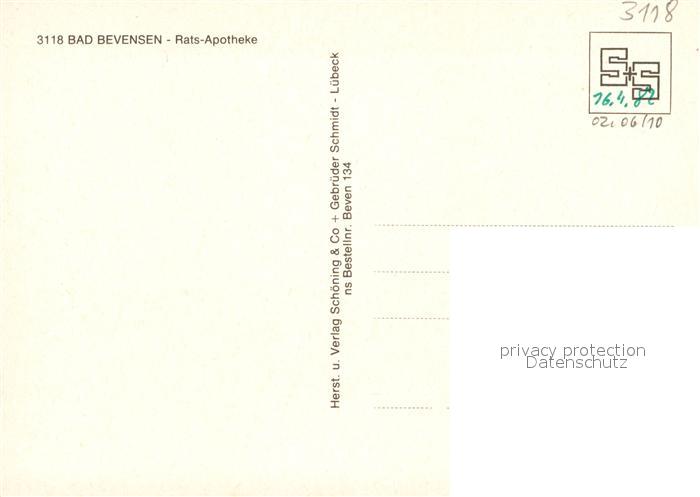 72953484 Bad Bevensen Ratsapotheke postalisch nicht gelaufen Erhaltung siehe scans [FriedD77] KatCode: 11110003360002