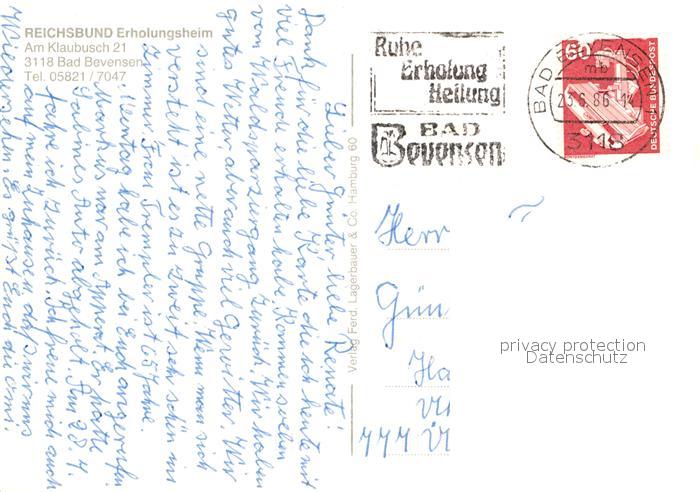 72946776 alte Postkarte Bad Bevensen Reichsbund Erholungsheim postalisch gelaufen Erhaltung siehe scans [KathaD81] KatCode: 11110003360002