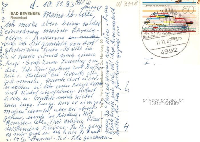 72942639 alte Postkarte Bad Bevensen Rosenbad postalisch gelaufen Erhaltung siehe scans [LiesaD40] KatCode: 11110003360002