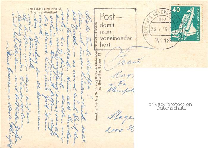 72960148 alte Postkarte Bad Bevensen Thermal-Freibad postalisch gelaufen Erhaltung siehe scans [PaolaD17] KatCode: 11110003360002