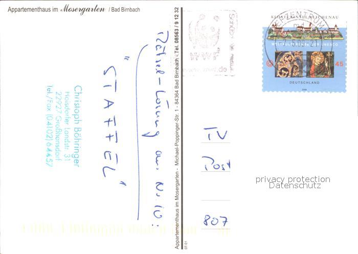 71952380 alte Postkarte Bad Birnbach Appartementhaus Mosergarten postalisch gelaufen Erhaltung siehe scans KatCode: 11110009277113