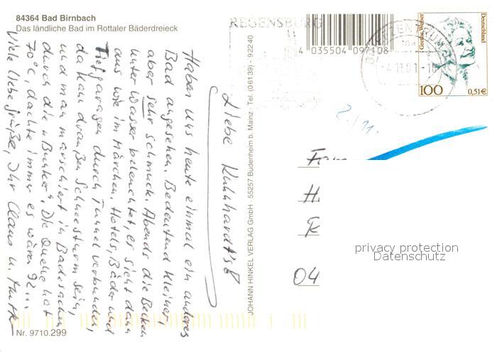73119822 alte Postkarte Bad Birnbach Freibad Brunnen im Rottal postalisch gelaufen Erhaltung siehe scans [LiesaD40] KatCode: 11110009277113