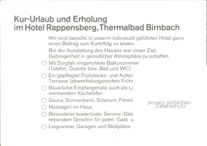 72146569 Bad Birnbach Hotel Rappensberg postalisch nicht gelaufen Werbekarte (keine Postkarte) Erhaltung siehe scans KatCode: 11110009277113