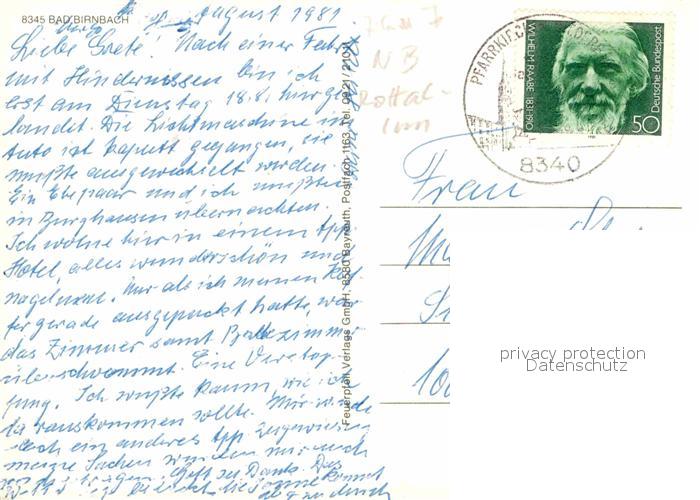 72905955 alte Postkarte Bad Birnbach Kirche Platz Teilansicht postalisch gelaufen Erhaltung siehe scans [AndreD76] KatCode: 11110009277113