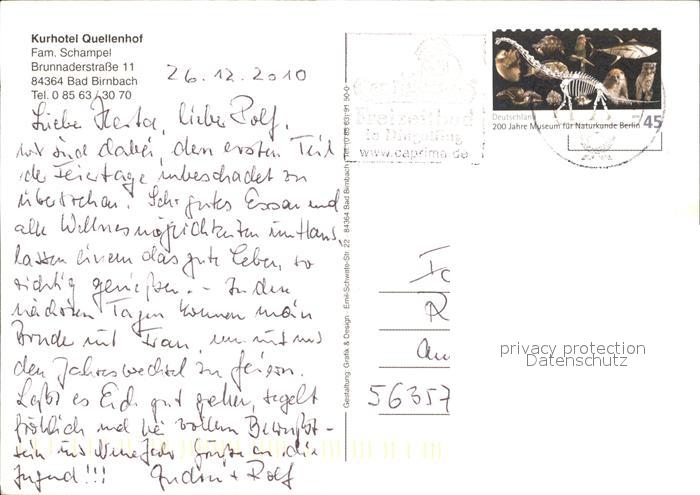 71935632 alte Postkarte Bad Birnbach Kurhotel Quellenhof postalisch gelaufen Erhaltung siehe scans KatCode: 11110009277113