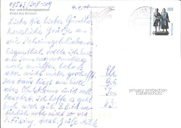 72599528 alte Postkarte Bad Birnbach Rottal-Terme postalisch gelaufen Erhaltung siehe scans [LiesaD40] KatCode: 11110009277113