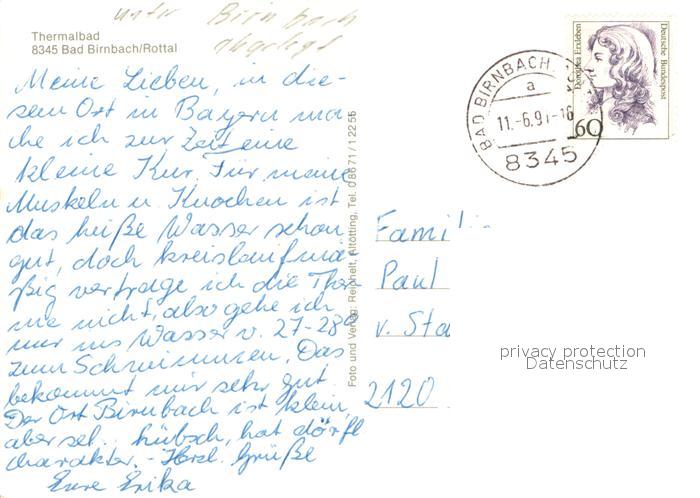 73636662 alte Postkarte Bad Birnbach Rottal Terme Fliegeraufnahme Thermal Hallen und Freibad postalisch gelaufen Erhaltung siehe scans [WerneD78] KatCode: 11110009277113