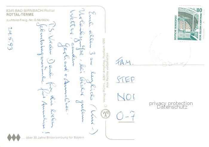 73788532 alte Postkarte Bad Birnbach Rottal Terme Fliegeraufnahme postalisch gelaufen Erhaltung siehe scans [WerneD78] KatCode: 11110009277113