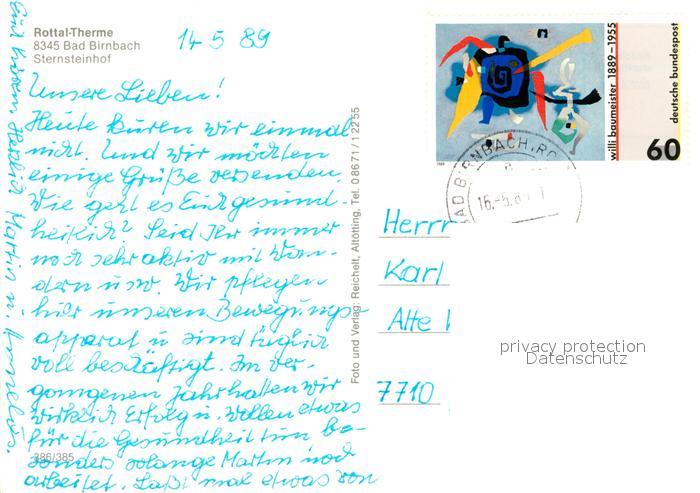 73167021 alte Postkarte Bad Birnbach Rottal Terme Sternsteinhof Schwimmbecken postalisch gelaufen Erhaltung siehe scans [WerneD78] KatCode: 11110009277113